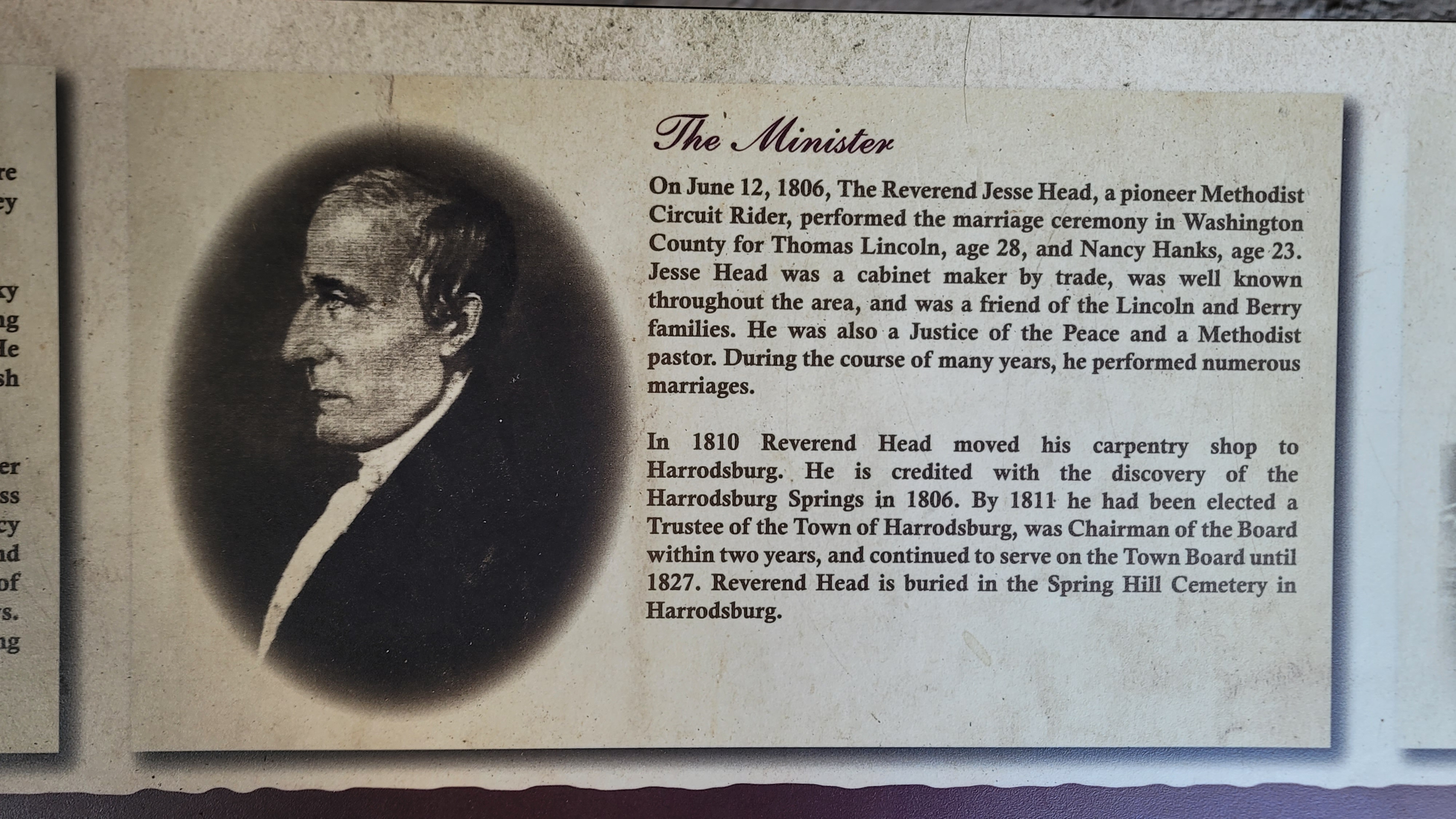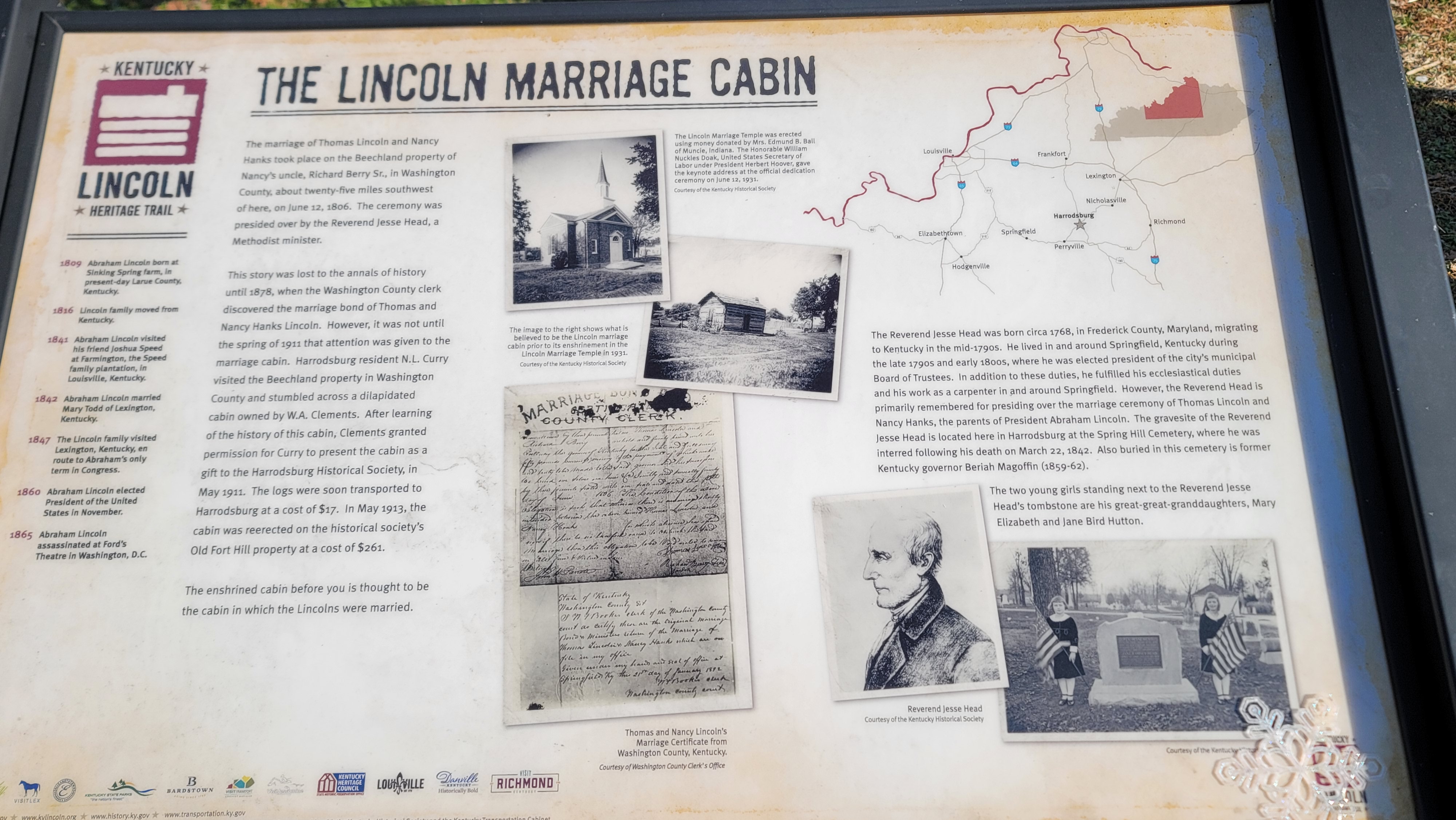 The Temple’s creation was driven by local residents who wished to honor the Lincoln family’s Kentucky roots. Harrodsburg holds a unique connection to the Lincolns: Rev. Jesse Head, the Methodist minister who performed the marriage, lived and is buried here, making the city a natural home for this important piece of American history.
